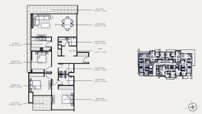Dispozícia apartmánu: 3 spálne, obývacia miestnosť s jedálňou, kuchyňa, 3 kúpeľne s toaletou, balkóny orientované na sever, juh a západ.