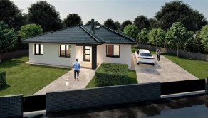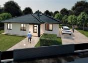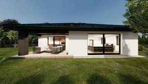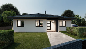 Realitná kancelária REG4U Vám ponúka na pozemku v okolí Martina VÝSTAVBU RODINNÉHO DOMU - moderný bungalov typ NKL 14 so 4 obytnými miestnosťami a veľkou terasou: