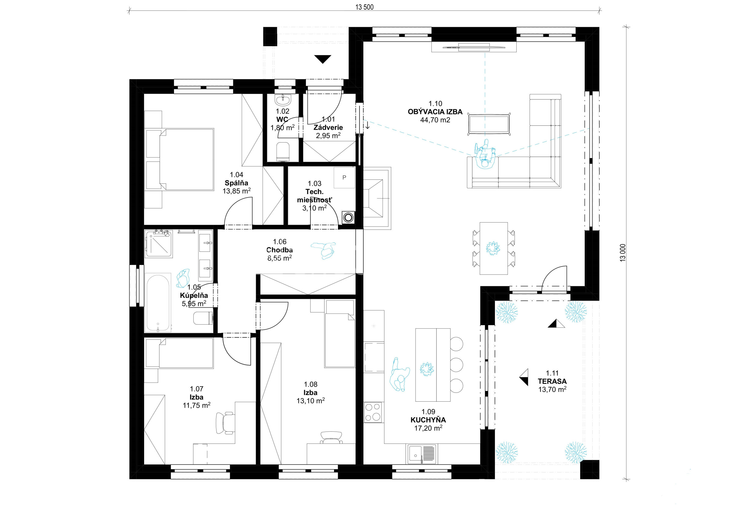 NA KĽÚČ v prevedení ŠTANDARD vrátane terasy: 160 700,-€