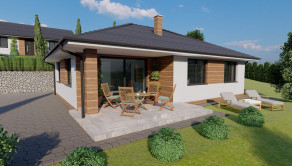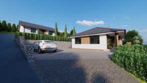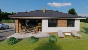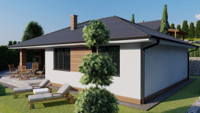 Realitná kancelária REG4U Vám ponúka na pozemku v okolí Ružomberka VÝSTAVBU RODINNÉHO DOMU - praktický 3 izbový bungalov typ NKSC 12 s maximálnym využitím priestoru. Denná zóna s priestrannou obývacou izbou a veľkou kuchyňou plynule nadväzuje na tichú nočnú časť, situovanú v zadnej časti domu.
