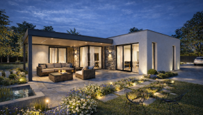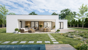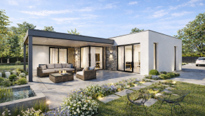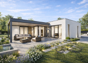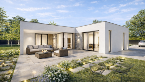 Realitná kancelária REG4U Vám ponúka na pozemku v okolí Púchova VÝSTAVBU RODINNÉHO DOMU - kompaktný 4 izbový rodinný dom typ NKM 03 s plochou strechou a veľkou terasou. Inteligentná dispozícia v tvare „L“ prirodzene oddeľuje dennú časť od súkromnej nočnej zóny, čím zabezpečuje absolútny pokoj pre každého člena rodiny.
