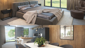 VILA B je jednopodlažná budova o rozlohe 250 m² obytnej plochy s vonkajšiu krytou terasu 100 m² a súkromným bazénom.