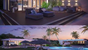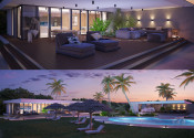 VILA B je jednopodlažná budova o rozlohe 250 m² obytnej plochy s vonkajšiu krytou terasu 100 m² a súkromným bazénom.