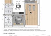 Bungalov A s rozlohou obytnej plochy 37 m² pozostáva z dvoch izieb: obývacia izba spojená s kuchyňou o výmere 20 m², spálňa o výmere 10 m² a kúpeľňa o výmere 6 m². Súčasťou bungalovu sú aj dve vonkajšie terasy o výmere 10,5 m² a 6 m² . Bungalov bude dokončený v prevedení Basic.