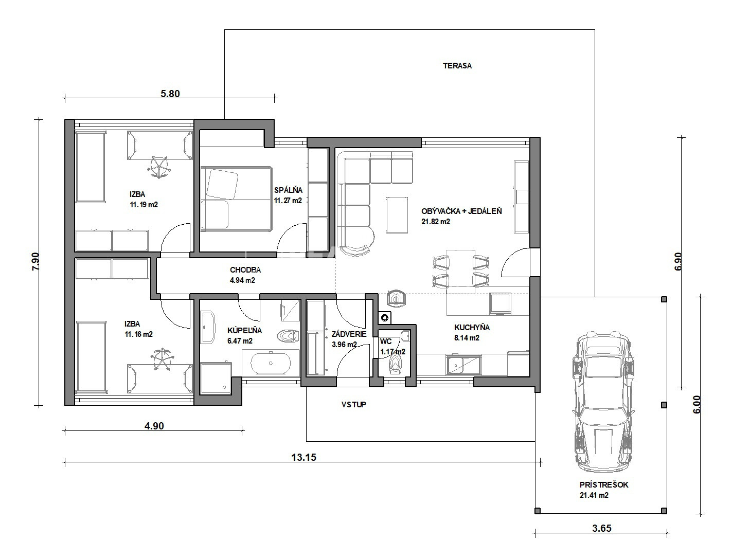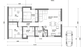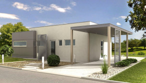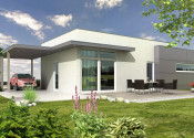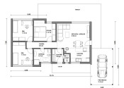 Realitná kancelária REG4U Vám ponúka na pozemku v okolí Žiliny VÝSTAVBU RODINNÉHO DOMU - 4 izbový bungalov typ VDT 18 s plochou strechou a autoprístreškom: