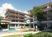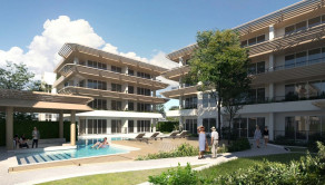 Vybavenie spoločného priestoru: spoločný bazén s barom, fitness, sauna, práčovňa, recepcia, stráženie, kompletný servis