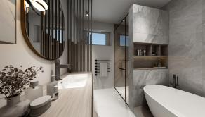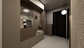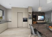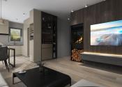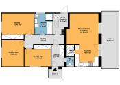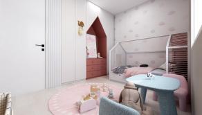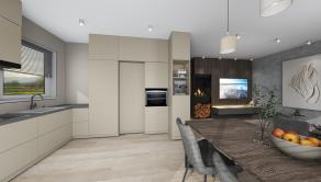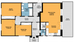 Dom s praktickým, funkčným obytným priestorom a dostatkom úložného priestoru pozostáva zo závetria (2,7m2), zádveria, vstupnej chodby so šatníkom (5,22m2) a samostatným wc (1,43m2), centrálnej chodby (7,63m2), z ktorej sa vstupuje do dennej časti, ktorý tvorí obývacia miestnosť so vstupom na vonkajšiu terasu a kuchyňa so špajzou (30m2), kúpeľňa s WC (7,38m2) a technická miestnosť (5,1m2) a ďalej do nočnej časti – spálne (15m2) a 2 samostatných izieb (11,08m2 a 10,15m2). Z obývacej časti je výstup na terasu.