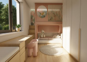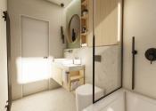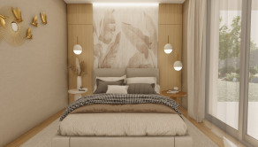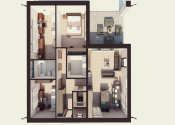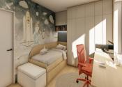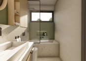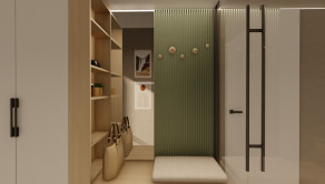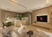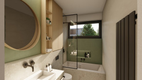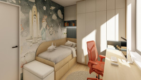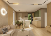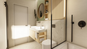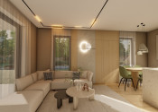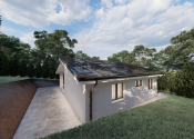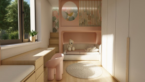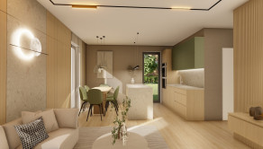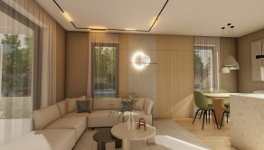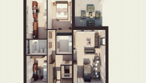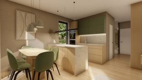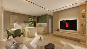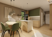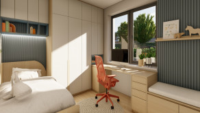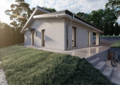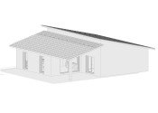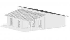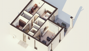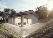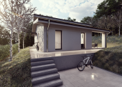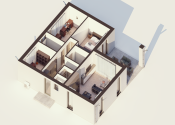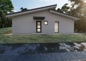 DISPOZÍCIA DOMU - pozri 3D vizualizáciu interiéru: vstup do domu tvorí zádverie so šatníkovou skriňou a samostatným WC, vpravo je obývacia izba spojená s kuchyňou, špajzou a jedálňou s výstupom na prestrešenú terasu. V strede domu sa nachádza technická miestnosť a spálňa rodičov, ktorá má tiež samostatný výstup na terasu. V ľavej časti domu sa nachádzajú dve izby a kúpeľňa s WC. Viď pôdorys v inzercii. Pre lepšiu predstavu dispozície budúci kupujúci získava 3D MODEL DOMČEKA v galérii inzercie.