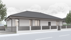 Realitná kancelária REG4U Vám ponúka projekt domu na mieru typ DHRO. Tento moderný 4 izbový bungalov ponúka harmonické spojenie nadčasového dizajnu a maximálneho pohodlia. Svetlá fasáda, čisté línie a elegantná valbová strecha vytvárajú príjemný, reprezentatívny vzhľad.