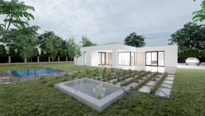 Na predmetnej parcele Vám vieme zrealizovať výstavbu navrhovaného moderného a nadčasového 4-izbového priestranného bungalovu