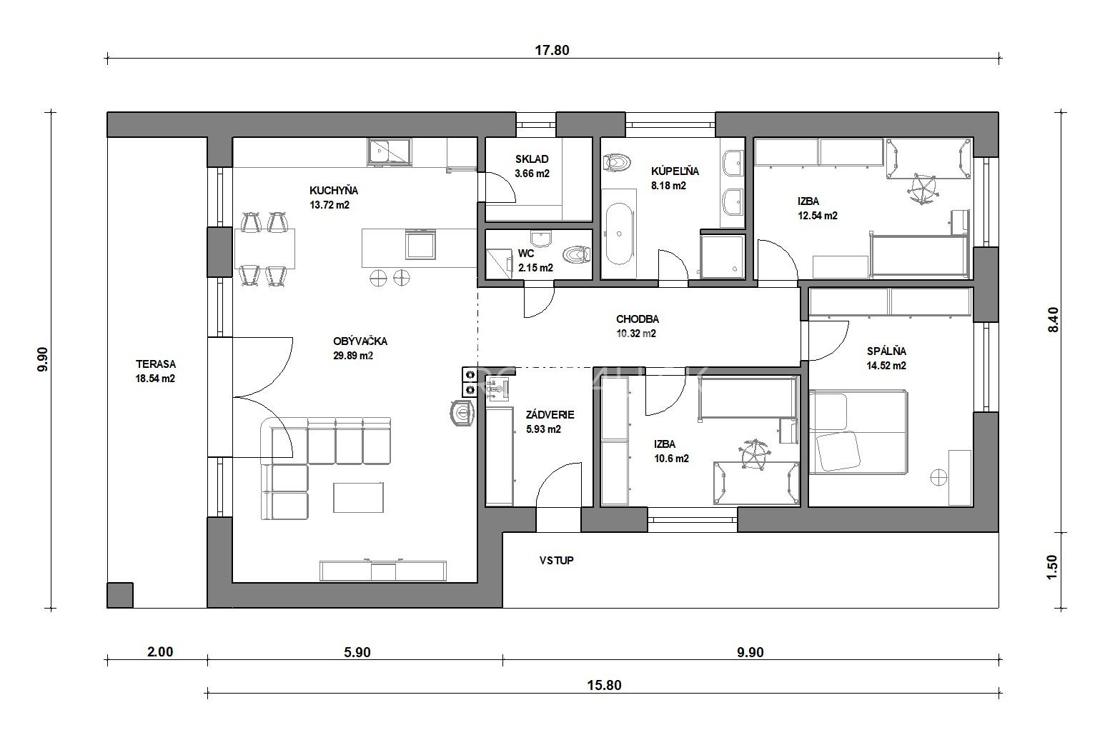 *cena domu a zastavaná plocha je vrátane prestrešených častí 18,54 m2 a 15m2 a vo vyhotovení montovaný