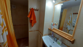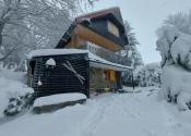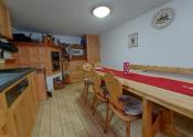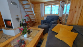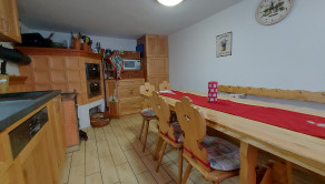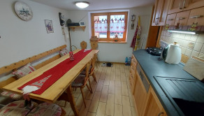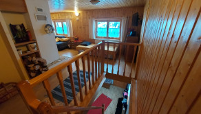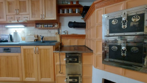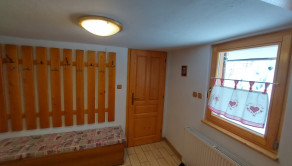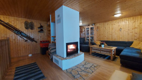 Prízemie: vedľa vstupných dverí sa vchádza do priestoru, ktorá plní funkciu dielne, drevárne a lyžiarne. Zo vstupnej chodby s odkladacím úložným priestorom vojdete do centrálnej chodby, súčasťou ktorej je samostatná kúpeľňa so sprchovacím kútom, samostatná toaleta, výstup na poschodie a vstup do kuchyne s veľkým dreveným stolom pre 9 osôb. Súčasťou kuchynskej linky s drezom, umývačkou riadu a chladničkou je na mieru postavaná keramická pec s 2 rúrami na pečenie. Krásnym masívnym dreveným schodiskom sa dostanete na 1 poschodie.
