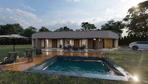 Realitná kancelária REG4U Vám ponúka projekt na mieru typ KKD - 5 izbového rodinného domu. Dizajnový bungalov s veľkou terasou a súkromím. Ideálny domov pre tých, ktorí hľadajú moderný štýl a pohodlie bez kompromisov.