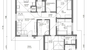 Na predmetnom pozemku Vám vieme postaviť aj takýto 4 izbový rodinný dom v modernom prevedení s veľmi vkusnou a funkčnou dispozíciou obľúbenou u klientov aj tým, že ponúka vyhotovenie spálne so samostatným šatníkom a kúpeľňou. Dom má parametre: