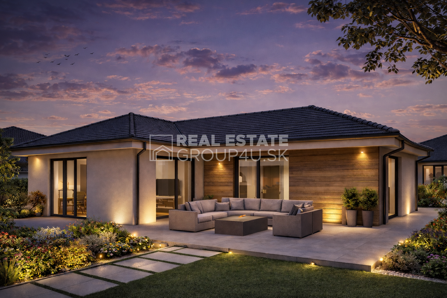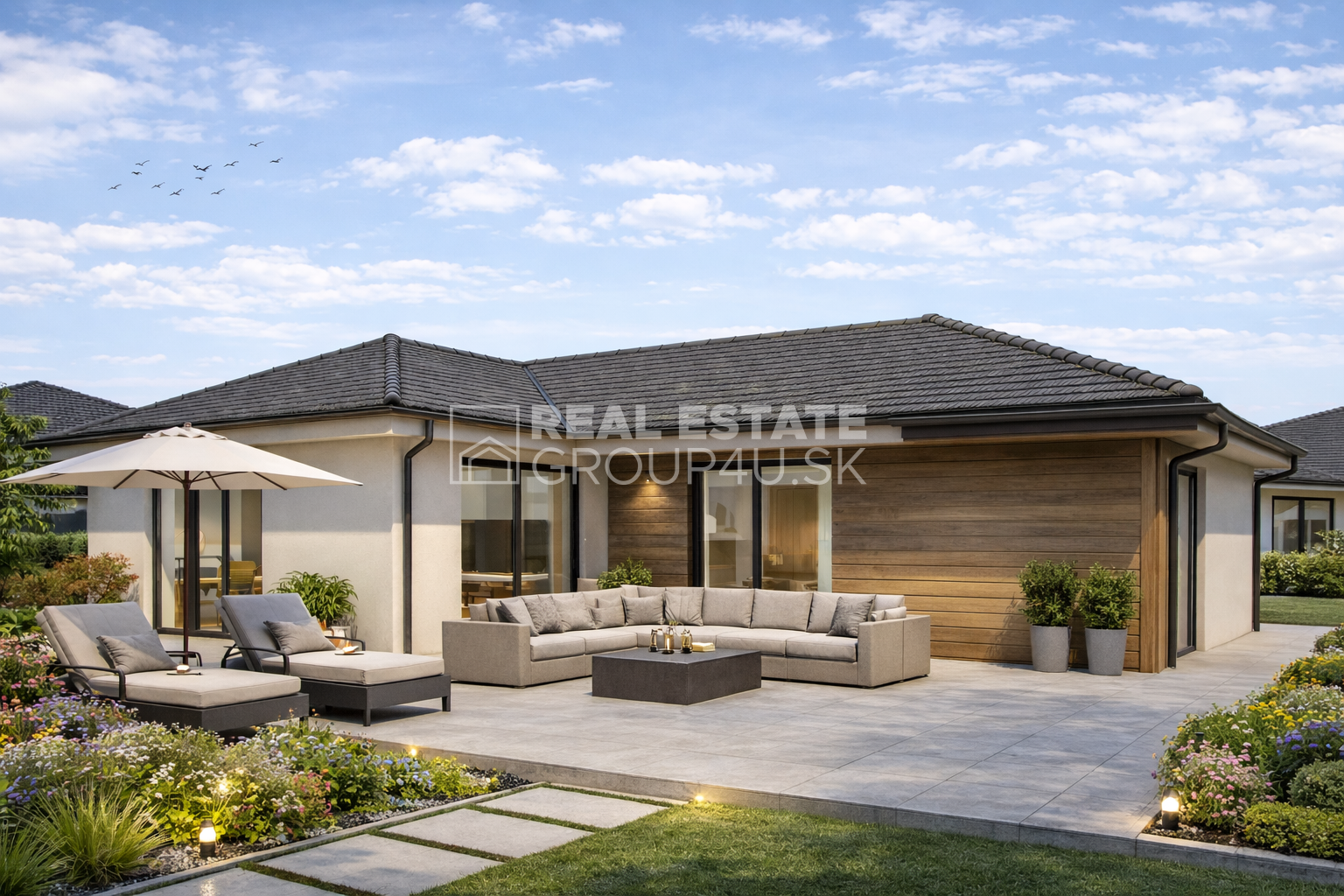 Na pozemku je navrhnutý nadčasový bungalov s dôrazom na vzdušnosť priestoru, dostatok prirodzeného svetla a harmonické prepojenie interiéru s exteriérom. Ideálna voľba pre rodiny, ktoré hľadajú pokojné, reprezentatívne a moderné bývanie. Bungalov vnútornými priestormi uspokojí nároky na bývanie viacčlennej rodiny a poskytuje maximálny komfort bývania.