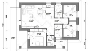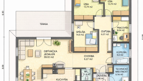 Na predmetnej parcele Vám vieme zabezpečiť výstavbu aj takéhoto praktického bungalovu pre 4 a viacčlennú rodinu: