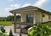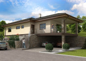 Na uvedenom pozemku Vám vieme zabezpečiť VÝSTAVBU aj takéhoto praktického 5-izbového rodinného domu vhodného aj do svahovitého terénu, s prekrytým parkovacím miestom pod terasou. Denná obytná zóna domu poskytuje krásny výhľad do údolia a na priamy tok rieky Váh: