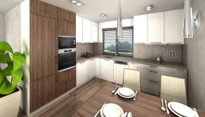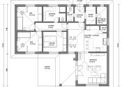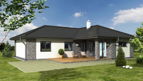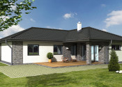 Na uvedenom pozemku Vám vieme zabezpečiť VÝSTAVBU aj takéhoto praktického 4-izbového rodinného domu v tvare L s prekrytou terasou s parametrami:
