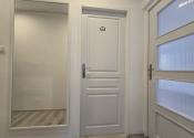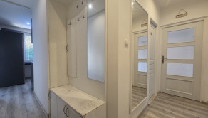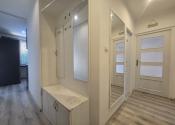 Z centrálnej predsiene v tvare „L“ sa dostanete po pravej strane do kúpeľne, izby, obývacej izby a z nej do spálne. Po ľavej strane sa z chodby vchádza do kuchyne a izby s balkónom. Kuchyňa je zároveň prepojená s obývacou miestnosť. Obývacia miestnosť je prístupná 2 vstupmi. Kuchyňa je plne vybavená spotrebičmi vrátane chladničky, potravinovej skrine a pracovného pultu. Obývacia miestnosť svojou výmerou až 21m2 umožňuje aj zakomponovanie jedálenského kúta v blízkosti vstupu do kuchyne. Kúpeľňa je vybavená rohovou hydromasážnou vaňou, umývadlom, wc, úložným priestorom a prípravou na pripojenie práčky.