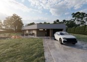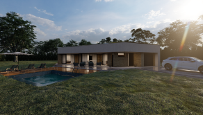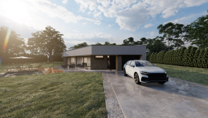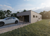 Realitná kancelária REG4U Vám ponúka na pozemku v okolí Piešťan VÝSTAVBU RODINNÉHO DOMU - 5 izbový moderný dom typ KK D s atypickou architektúrou s výstupom na terasu zo všetkých obytných miestností. Dom je riešený s dôrazom na komfort, modernosť a nadčasový dizajn.