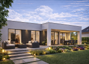 Realitná kancelária REG4U Vám ponúka na pozemku v okolí Hlohovca VÝSTAVBU RODINNÉHO DOMU - 3 izbového bungalovu typ DHSL. Moderný dom s presvetlenými miestnosťami a veľkou terasou orientovanou do záhrady. Jednoduchá údržba, moderný dizajn a funkčné riešenie robia z tejto nehnuteľnosti ideálnu voľbu pre rodinné bývanie. Komfortné bývanie v modernom štýle. Architektúra domu je minimalistická, čistá a nadčasová, vhodná aj pre náročného klienta.