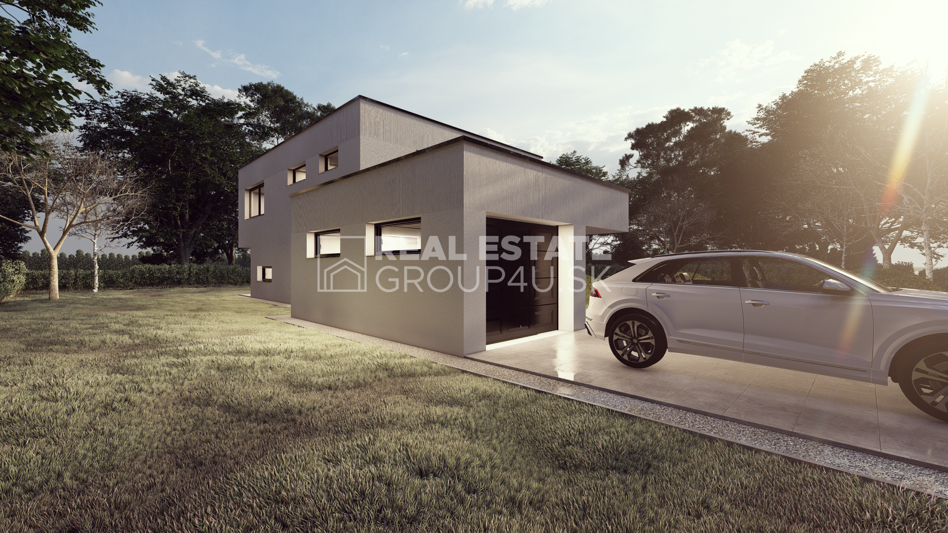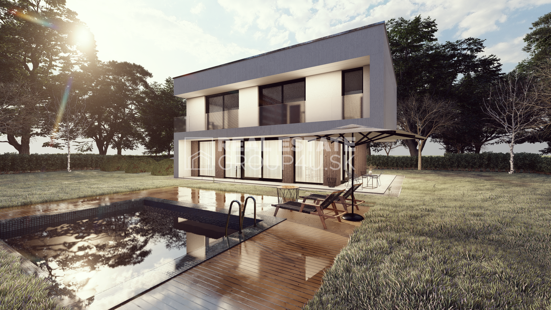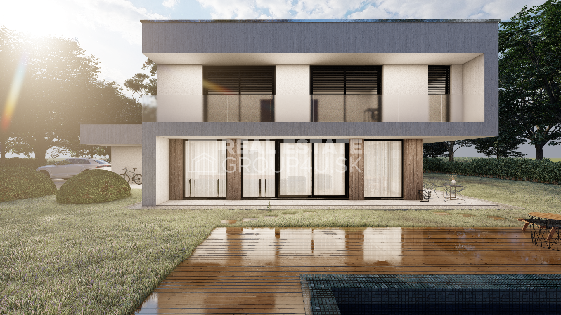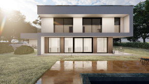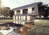 Realitná kancelária REG4U Vám ponúka na pozemku v okolí Piešťan VÝSTAVBU LUXUSNEJ VILY. Elegantná vila typ KK E s čistými líniami, veľkými preskleniami s terasou a bazénom je ideálnou voľbou pre ľudí hľadajúcich komfort, luxus a štýl. Miesto, kde luxus dostáva zmysel.