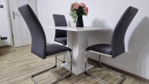 Dispozičné riešenie a vybavenie bytu: Po vstupe do centrálnej chodby s bezpečnostnými vchodovými dverami, súčasťou ktorej je skriňa a botník sa po pravej strane vstupuje do spálne, ktorá je vybavená manželskou posteľou, komodou a nočnými stolíkmi, vedľa spálne sa nachádza obývacia izba so sektorovým nábytkom, rohovým gaučom, konferenčnými stolíkmi, TV a jedálenským kútom. Po ľavej strane sa chodbičkou prechádza okolo kúpeľne, ktorá je vybavená vaňou, kúpeľňovým nábytkom, polohovacím stropným vešiakom na bielizeň, práčkou a ďalej okolo samostatného wc. V kuchyni je na mieru zhotovená kuchynská linka so zabudovanými spotrebičmi - rúra s plynová varná doska, mikrovlnná rúra, granitový drez a voľne stojaca chladnička.