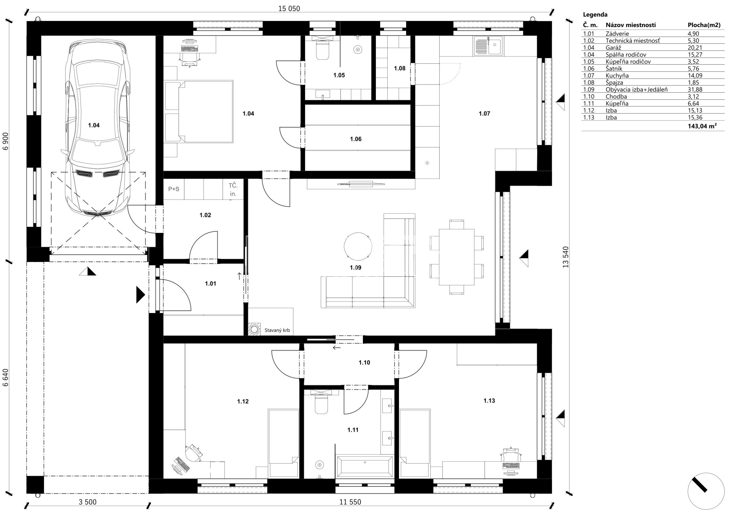 V projekte je možnosť bezplatných, malých úprav v dispozičnom riešení interiéru stavby v rámci projektových možností.