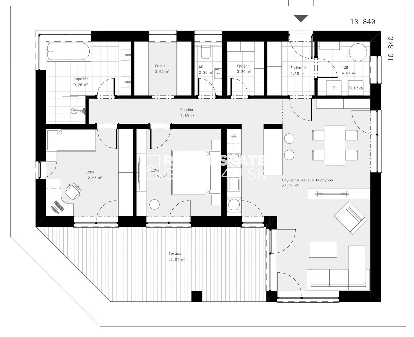 • plocha terasy: 23,07 m2