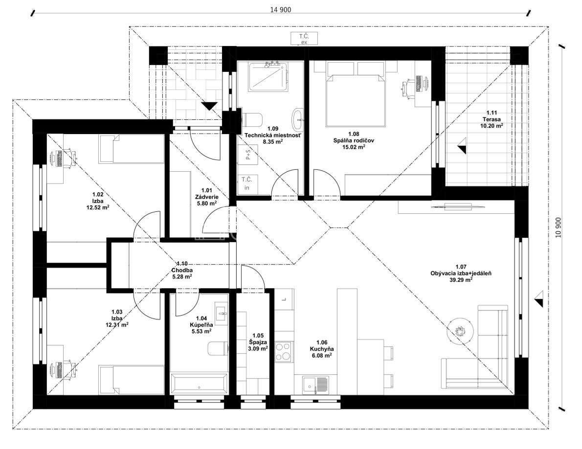 V projekte je možnosť bezplatných, malých úprav v dispozičnom riešení interiéru stavby v rámci projektových možností.