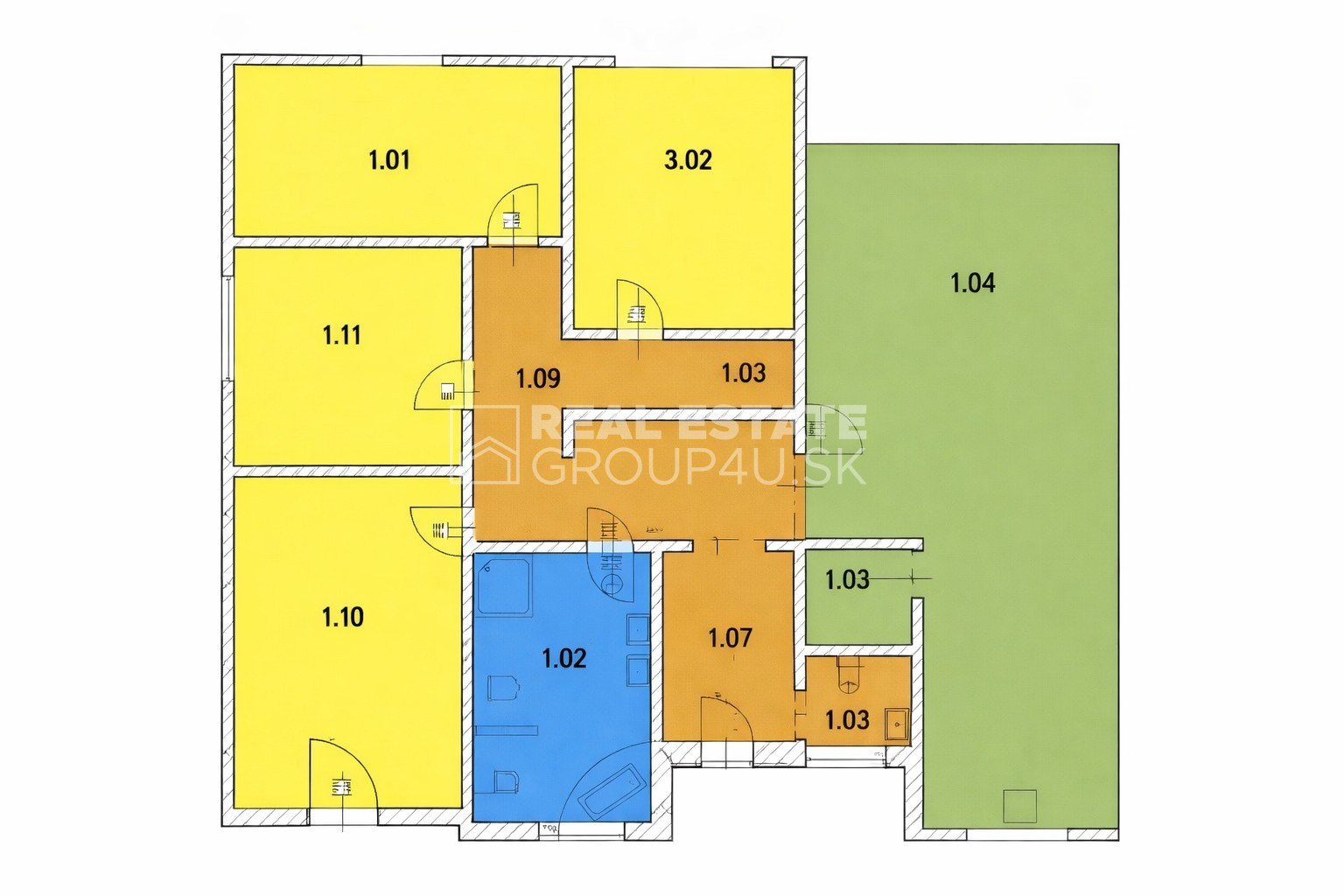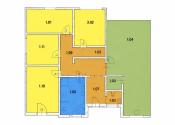 Po vstupe do domu sa nachádza priestranné zádverie (5,25m2) s dostatkom úložného priestoru a samostatným WC (1,32m2). Zo zádveria sa plynule prechádza do chodby (11,43m2) s ďalším odkladacím priestorom. Na ľavej strane sa nachádza nočná časť domu, ktorú tvoria tri samostatné izby (12m2, 12,32m2, 13,35m2), spálňa (17,12m2), tech. miestnosť (3,26m2) a priestranná kúpeľňa (8,24m2) vybavená vaňou, sprchovacím kútom, dvojumývadlom a WC. Na pravej strane od vstupu je situovaná denná časť (38,82m2), ktorá pozostáva z veľkorysej obývacej miestnosti prepojenej s kuchyňou. Kuchyňa disponuje praktickou špajzou (1,96m2). Z obývacej miestnosti je priamy výstup na terasu, ktorá poskytuje ideálny priestor na oddych.